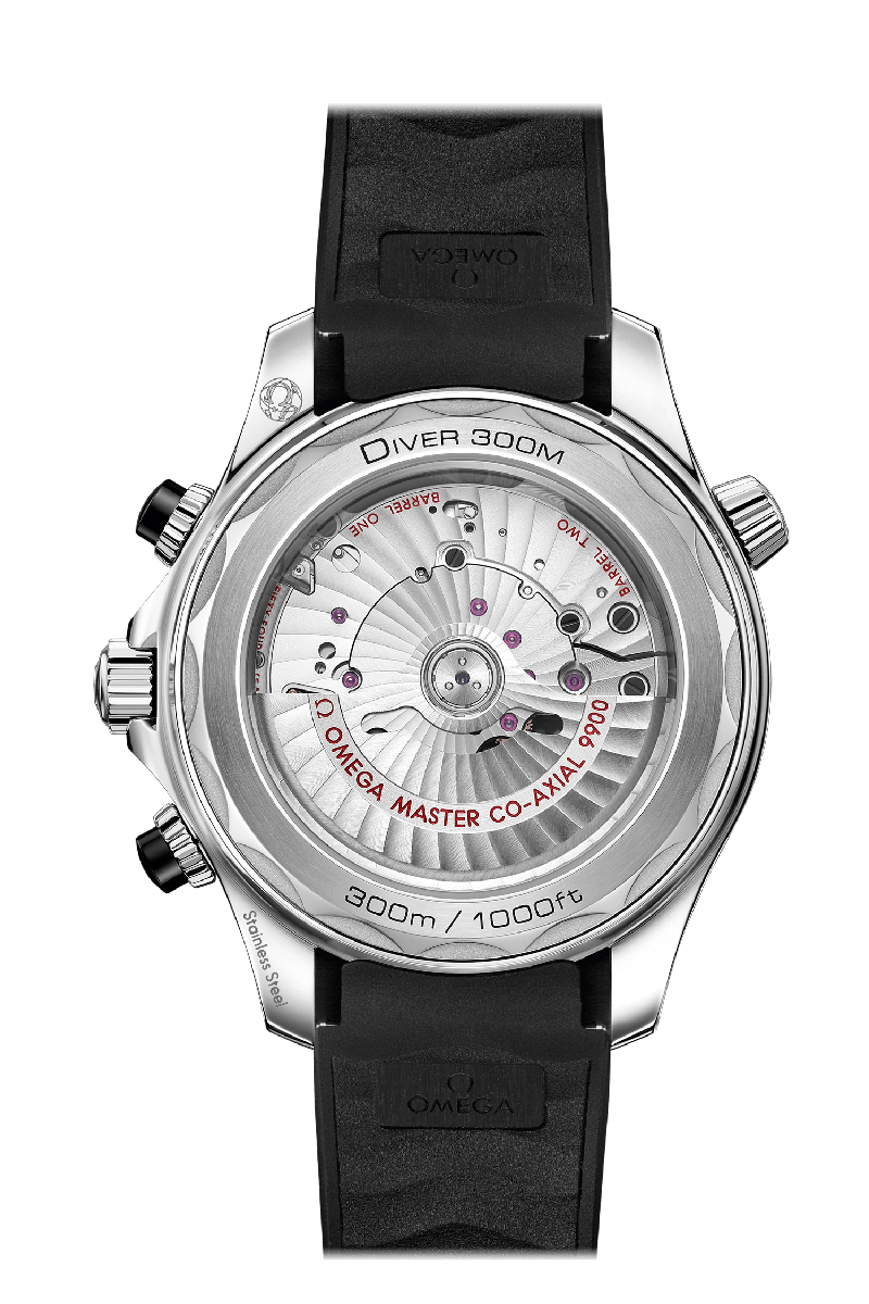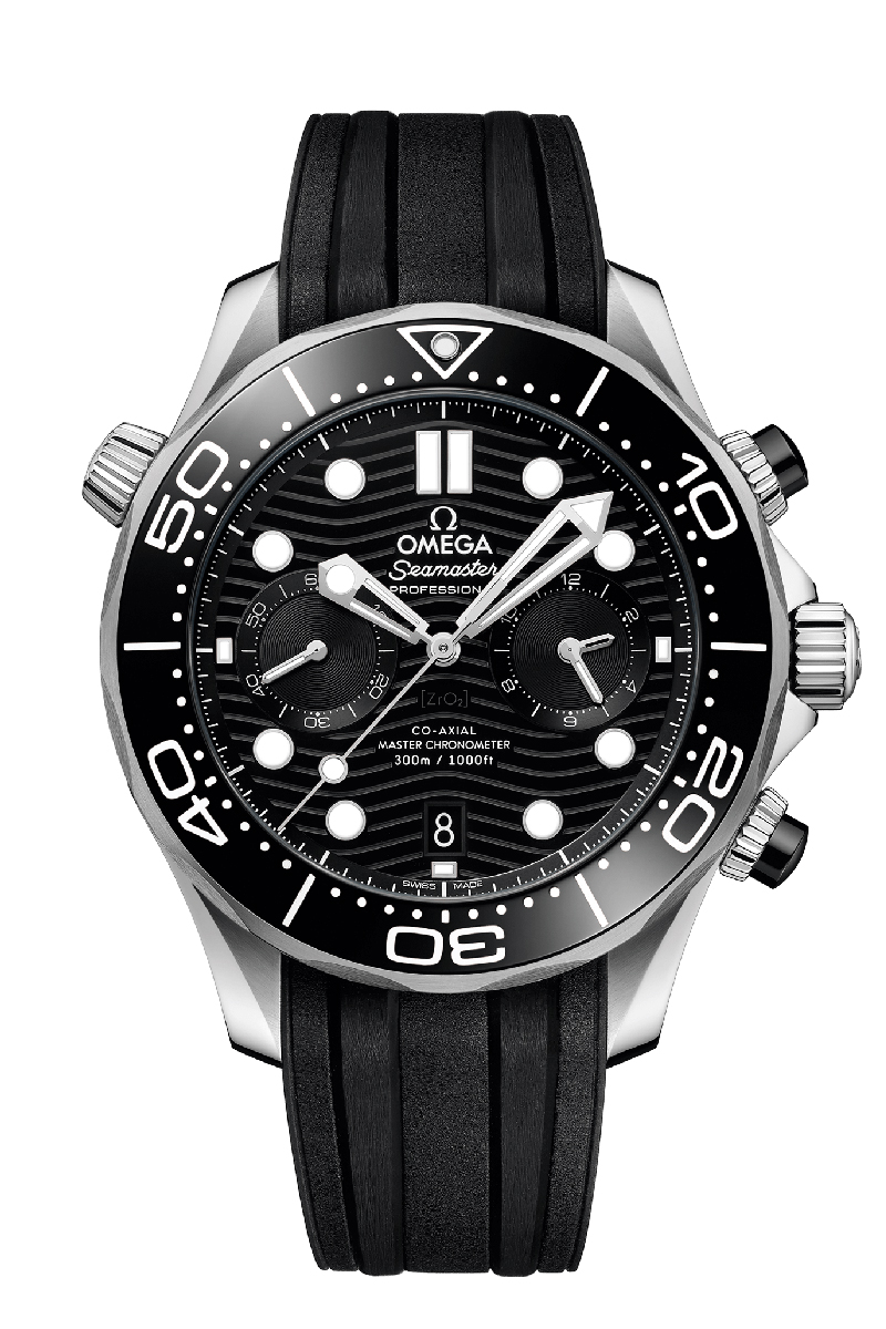 Desde 1993, el Seamaster Professional Diver 300M disfruta de una multitud de seguidores legendaria. La moderna colección de hoy ha adoptado el famoso patrimonio oceánico y lo ha actualizado con las innovaciones y el diseño más perfectos de OMEGA. Este cronógrafo de 44 mm está realizado en acero noble e incluye un bisel cerámico negro pulido, con escala de inmersión esmaltada en blanco. Los pulsadores son también de cerámica negra pulida, igual que la esfera, que luce unas ondas grabadas por láser y una ventana de fecha situada a las 6. Las agujas de la subesfera están rodiadas, junto con todas las demás agujas e índices, que están rellenos de Super-LumiNova blanco. El reloj se presenta con una pulsera de caucho negro e incorpora el movimiento OMEGA Master Chronometer calibre 9900, visible a través del cristal de zafiro del fondo de caja con borde ondulado.