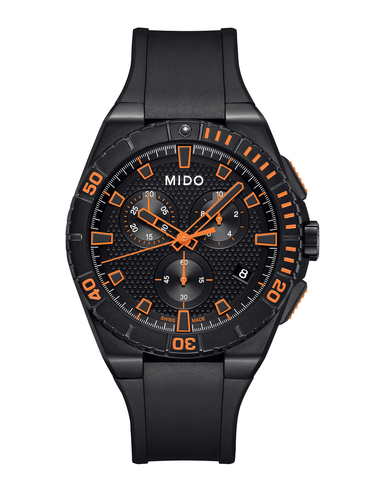 Funciones Cronógrafo, horas, minutos, segundos. Visualización de fecha en la posición de las 4 en punto.