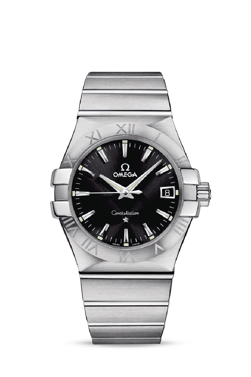 Este modelo luce una esfera negra con fecha situada a las 3 y cristal de zafiro resistente al rayado. El bisel, con números romanos grabados, está montado en una caja de 35 mm y acero noble, con brazalete de acero noble. Cinco años de garantía.
