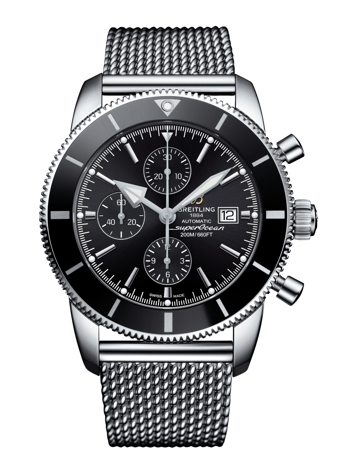 Combinando el diseño de alta tecnología con un toque vintage, el Superocean Héritage II Chronograph 44 en acero y acero y oro muestra números en el bisel que lo distinguen de otros modelos en la colección. Con una esfera azul o negra de 44 mm de diámetro con contadores de tono sobre tono, esta llamativa pieza personifica el espíritu de aventura y rendimiento de Breitling.
