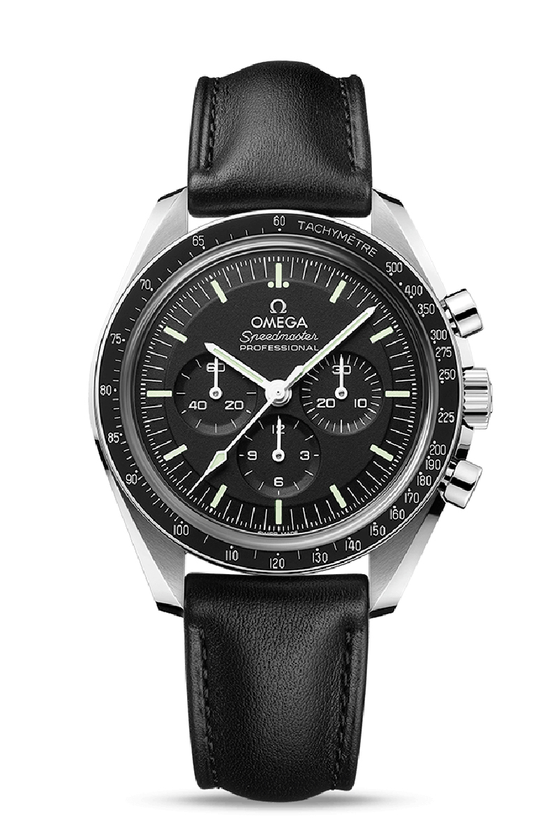El Speedmaster Moonwatch es uno de los relojes más emblemáticos del mundo. Como parte integrante de las seis misiones lunares, el legendario cronógrafo constituye una impresionante representación del espíritu pionero y aventurero de la firma. Presentado con una pulsera de piel negra, este Moonwatch de 42 mm en acero noble luce en el frente un cristal de zafiro y también en el fondo de caja. Inspirado en la cuarta generación del estilo Speedmaster utilizado en la Luna, también incluye una caja asimétrica, esfera negra achaflanada con logotipo OMEGA en aplique y el famoso círculo sobre el 90 del aro de bisel en aluminio anodizado. El reloj incorpora el OMEGA Co-Axial Master Chronometer calibre 3861, que activa el pequeño segundero de la subesfera, los contadores de 30 minutos y de 12 horas y la función de cronógrafo central.