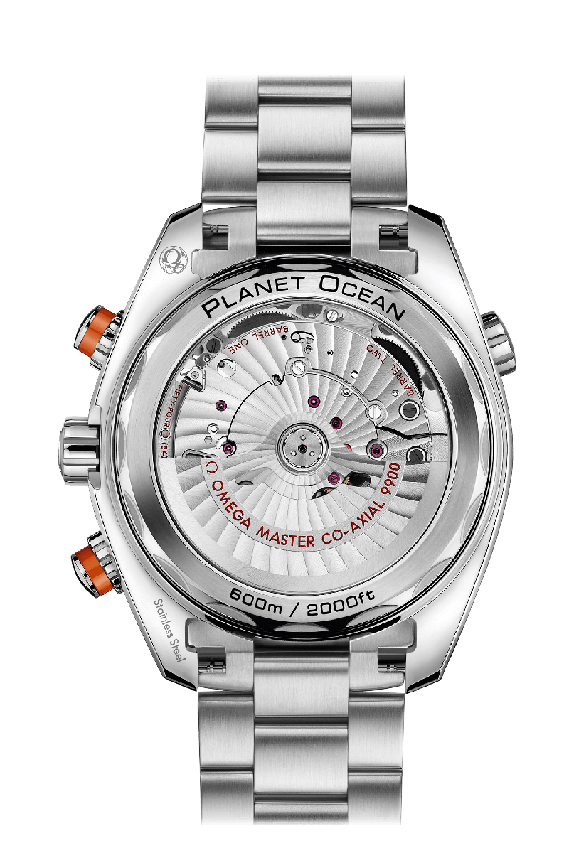 Cuando, en 2005, OMEGA lanzó la línea Planet Ocean, lo hizo pensando en el legado marino de la firma. Hoy, los elegantes modelos continúan rindiendo homenaje a la tradición de OMEGA en relojes de inmersión. Este modelo de 45,5 mm en acero noble tiene esfera de titanio ceramizado, con un pequeño segundero, ventana de fecha y contadores de 60 minutos y de 12 horas situados a las 3. Se utiliza cerámica naranja en los anillos de los pulsadores y en el bisel unidireccional con escala de inmersión rellena de cerámica líquida y Super-LumiNova. Otras características incluyen un fondo de caja atornillado alveolar y un brazalete integrado de acero noble, con cierre desplegable extensible patentado y extensión para traje de buceo. El reloj es sumergible hasta 600 metros/2000 pies/60 bar y tiene válvula de escape de helio. El movimiento OMEGA Master Chronometer calibre 8900 es visible a través del fondo de caja transparente. Para lograr la categoría de Master Chronometer, ha superado las 8 rigurosas pruebas establecidas por el METAS (Swiss Federal Institute of Metrology).