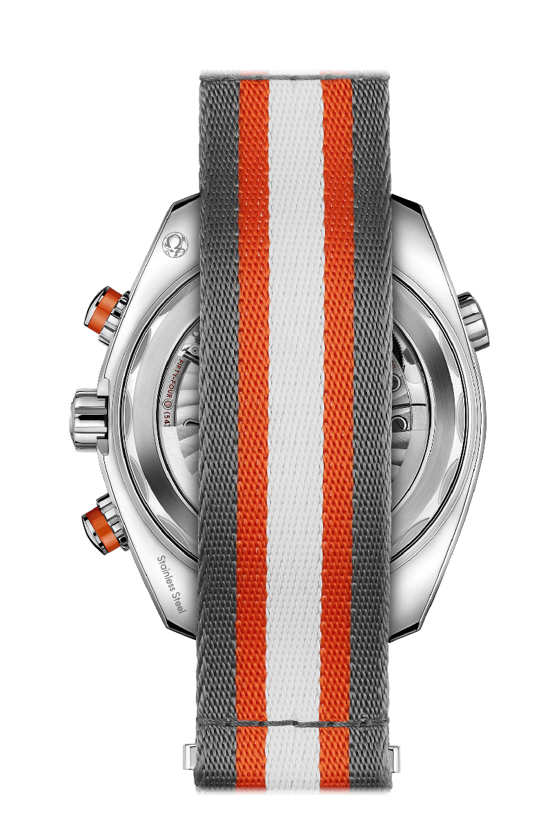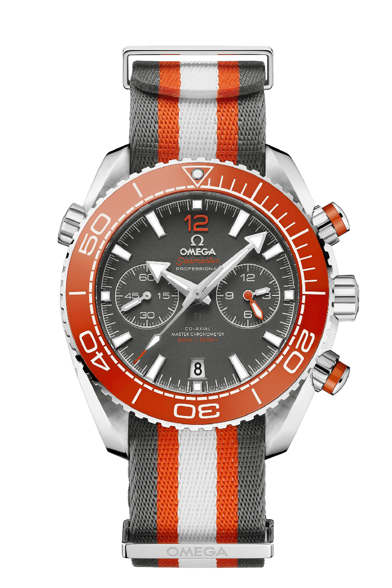 Cuando, en 2005, OMEGA lanzó la línea Planet Ocean, lo hizo pensando en el legado marino de la firma. Hoy, los elegantes modelos continúan rindiendo homenaje a la tradición de OMEGA en relojes de inmersión. Este modelo de 45,5 mm en acero noble tiene esfera de titanio ceramizado, con un pequeño segundero, ventana de fecha y contadores de 60 minutos y de 12 horas situados a las 3. Se utiliza cerámica naranja en los anillos de los pulsadores y en el bisel unidireccional con escala de inmersión rellena de cerámica líquida y Super-LumiNova. Otras características incluyen un fondo de caja atornillado alveolar y una pulsera NATO de poliamida, con 5 listas en naranja, gris y blanco, hebilla pulida y hembrillas de acero noble. El reloj es sumergible hasta 600 metros/2000 pies/60 bar y tiene válvula de escape de helio. El movimiento OMEGA Master Chronometer calibre 8900 es visible a través del fondo de caja transparente. Para lograr la categoría de Master Chronometer, ha superado las 8 rigurosas pruebas establecidas por el METAS (Swiss Federal Institute of Metrology).