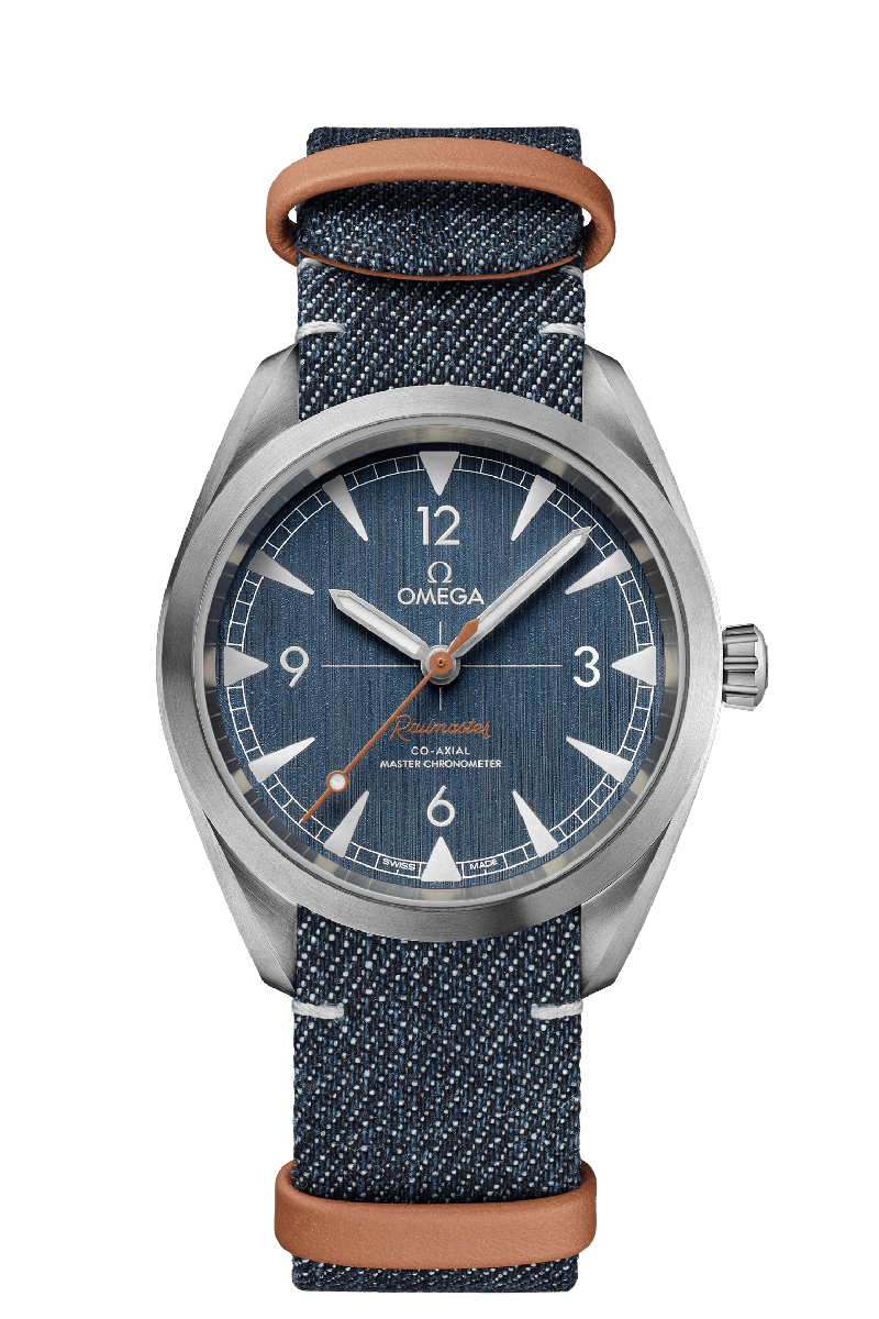 El OMEGA Railmaster original, de 1957, era un práctico pero elegante reloj antimagnético diseñado para el personal del ferrocarril o cualquiera que trabajase cerca de campos eléctricos. Hoy, ese espíritu industrial y de innovación se ha actualizado, para lograr una colección moderna. En este modelo inspirado en la tela vaquera, la caja simétrica de 40 mm es de acero noble, con un diseño de borde ondulado en el reverso. La esfera “blue jeans” con cepillado vertical incluye, también en acero noble cepillado, agujas e índices horarios incrustados y rellenos con Super-LumiNova gris claro. Hay además un segundero central beis y un “Railmaster” transferido que proporciona un toque clásico. El reloj tiene una pulsera NATO de tela vaquera azul y piel, además de un fondo de caja orientado, con diseño NAIAD LOCK que mantiene los textos en posición de lectura. Incorpora el calibre OMEGA Co-Axial Master Chronometer 8806, resistente a campos magnéticos hasta de 15 000 gauss.