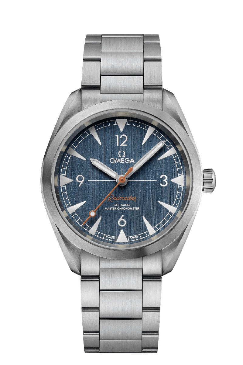 El OMEGA Railmaster original, de 1957, era un práctico pero elegante reloj antimagnético diseñado para el personal del ferrocarril o cualquiera que trabajase cerca de campos eléctricos. Hoy, ese espíritu industrial y de innovación se ha actualizado, para lograr una colección moderna. En este modelo inspirado en la tela vaquera, la caja simétrica de 40 mm es de acero noble, con un diseño de borde ondulado en el reverso. La esfera “blue jeans” con cepillado vertical incluye, también en acero noble cepillado, agujas e índices horarios incrustados y rellenos con Super-LumiNova gris claro. Hay además un segundero central beis y un “Railmaster” transferido que proporciona un toque clásico. El reloj tiene brazalete en acero noble y un fondo de caja orientado, con diseño NAIAD LOCK que mantiene los textos en posición de lectura. Incorpora el calibre OMEGA Co-Axial Master Chronometer 8806, resistente a campos magnéticos hasta de 15 000 gauss.