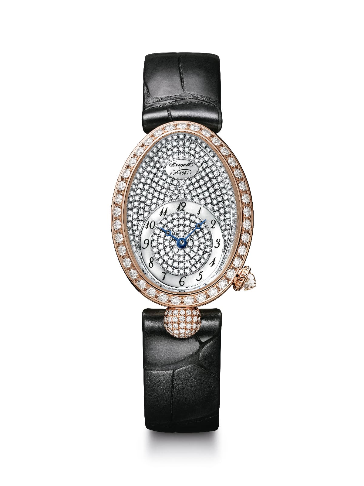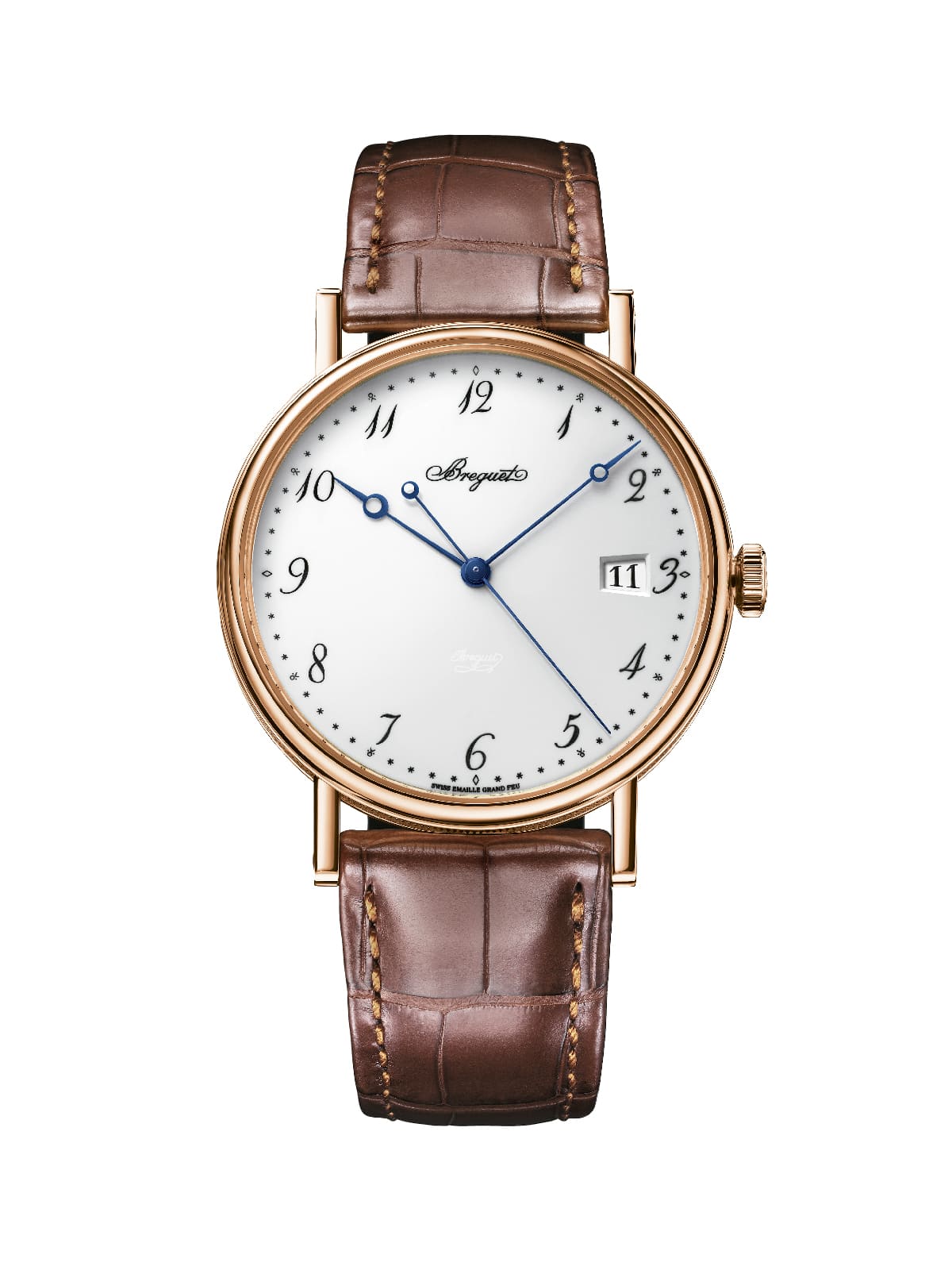 Dimensiones: 33 x 24,95 mm. Estanco 3 bar (30 m). Esfera de nácar natural blanco. Individualmente numerada y firmada Breguet. Disco horario con números arábigos Breguet descentrado a las 6 h. Agujas Breguet de pomme évidée en acero azulado. Movimiento mecánico de carga automática, cal. 586/1. Numerado y firmado Breguet. 63/4 líneas. 29 rubíes. Reserva de marcha de 38 horas. Escape de áncora en línea invertida con cuernos de silicio. Espiral de silicio. Frecuencia de 3 Hz. Ajustado en 6 posiciones.