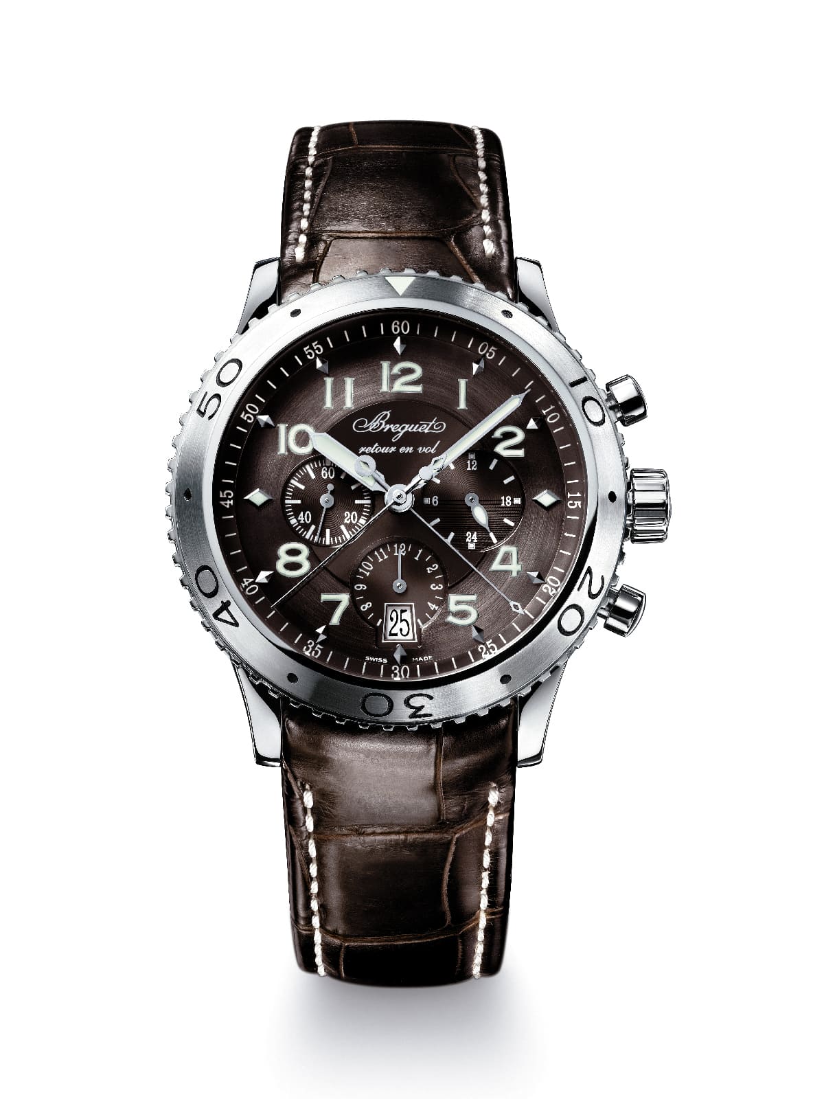 Funciones Disco horario con números arábigos Breguet descentrado a las 6 h.