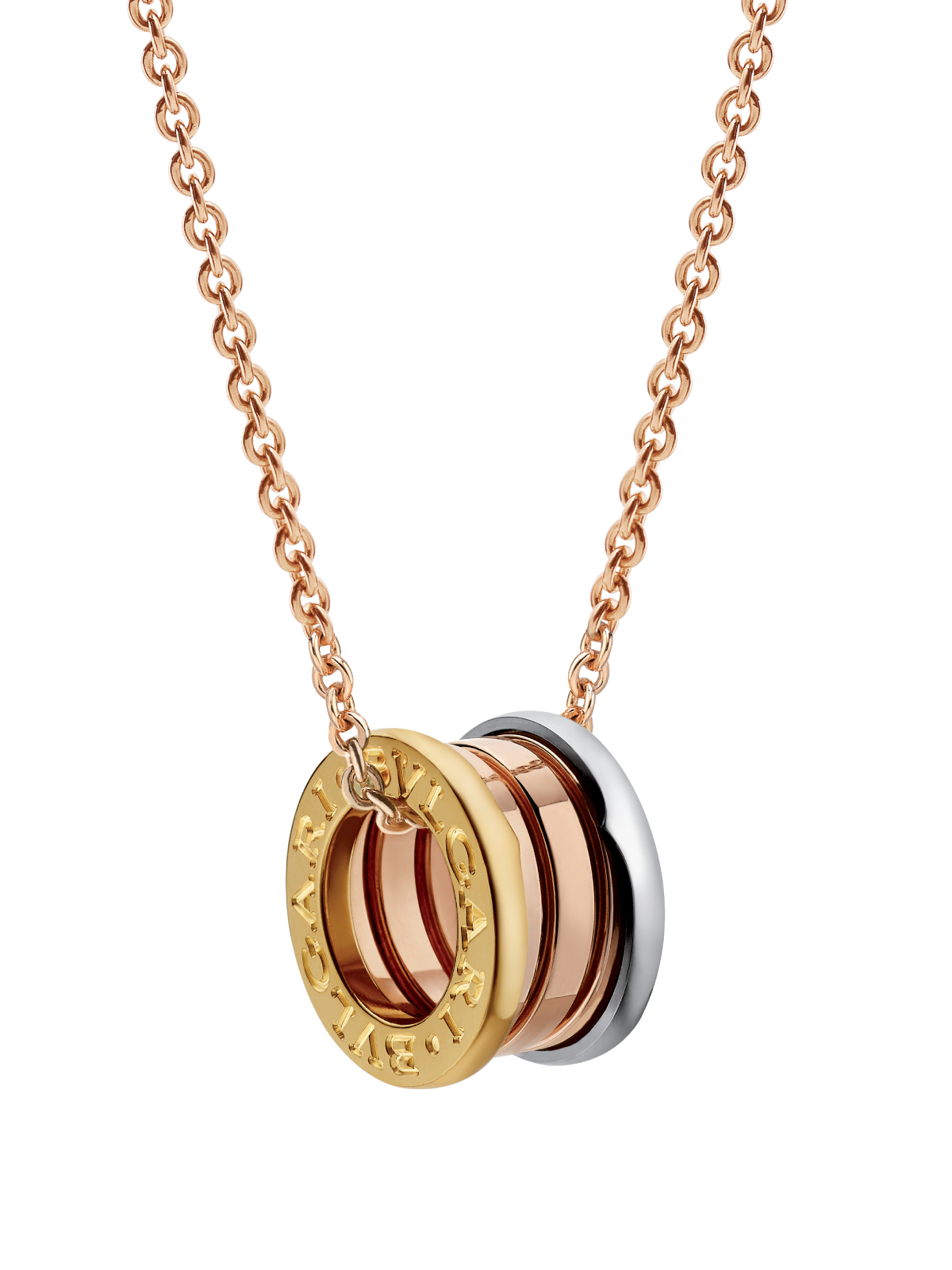 En un juego brillante de simetría, el sofisticado colgante B.zero1 Perfect Mistake se caracteriza por la atrevida geometría de sus audaces formas.
