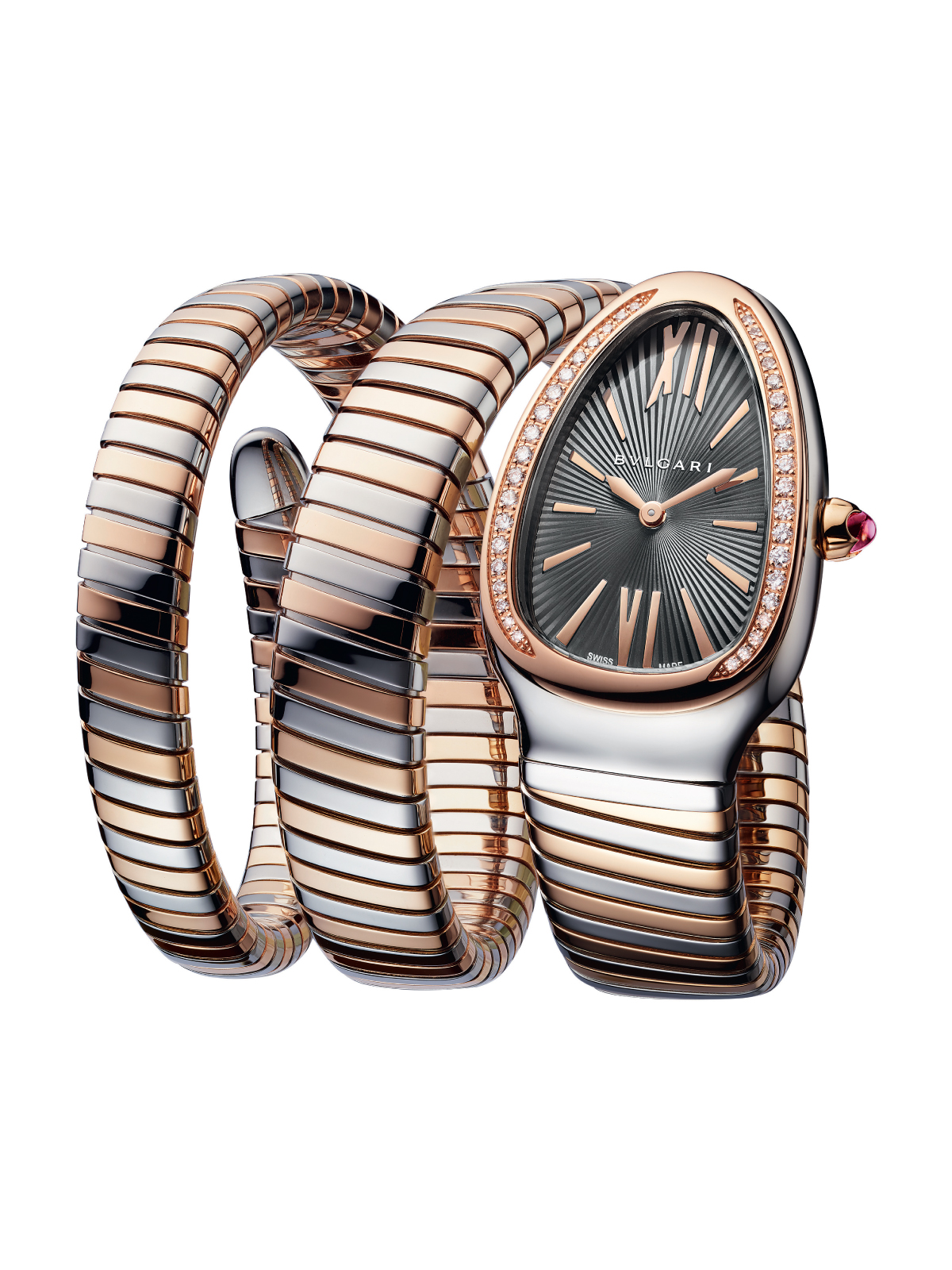 Material Bisel en oro rosa 18 qt con diamantes talla brillante engastados, corona en oro rosa de 18 qt con cabujón rubelita rosa engastado y esfera lacada en gris con grabado guilloché soleil.