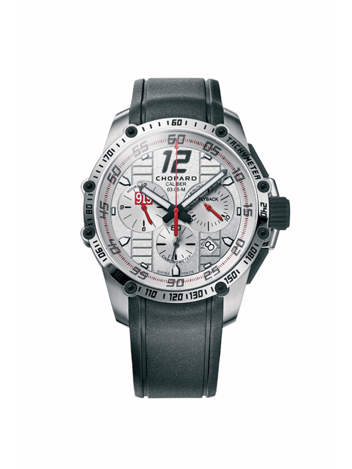 Funciones Horas y minutos, pequeño segundero, fecha, aguja de segundero de cronógrafo, contador de 30 minutos y contador de 12 horas. Funciones cronógrafo, flyback, escala taquimétrica y parada de segundero. Certificado cronómetro (COSC).
